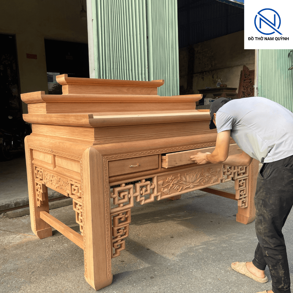 Sản phẩm bàn thờ 3 cấp có ngăn kéo gỗ hương đẹp