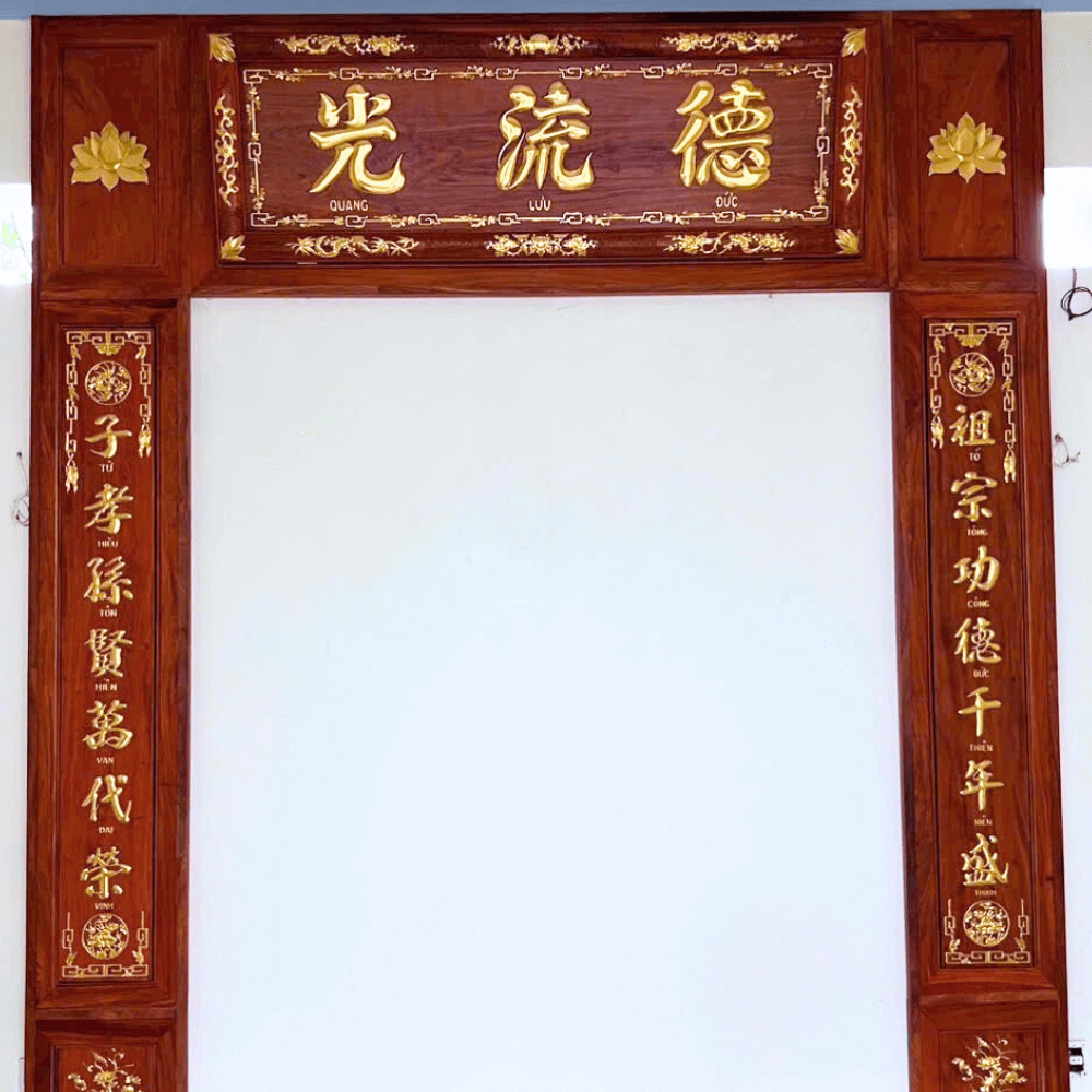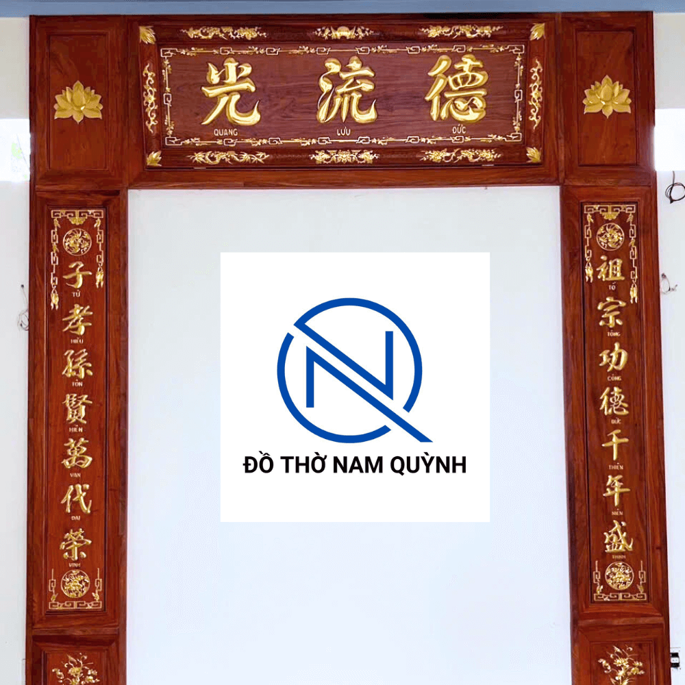 Vách thờ và hoành phi câu đối gỗ hương đá đẹp